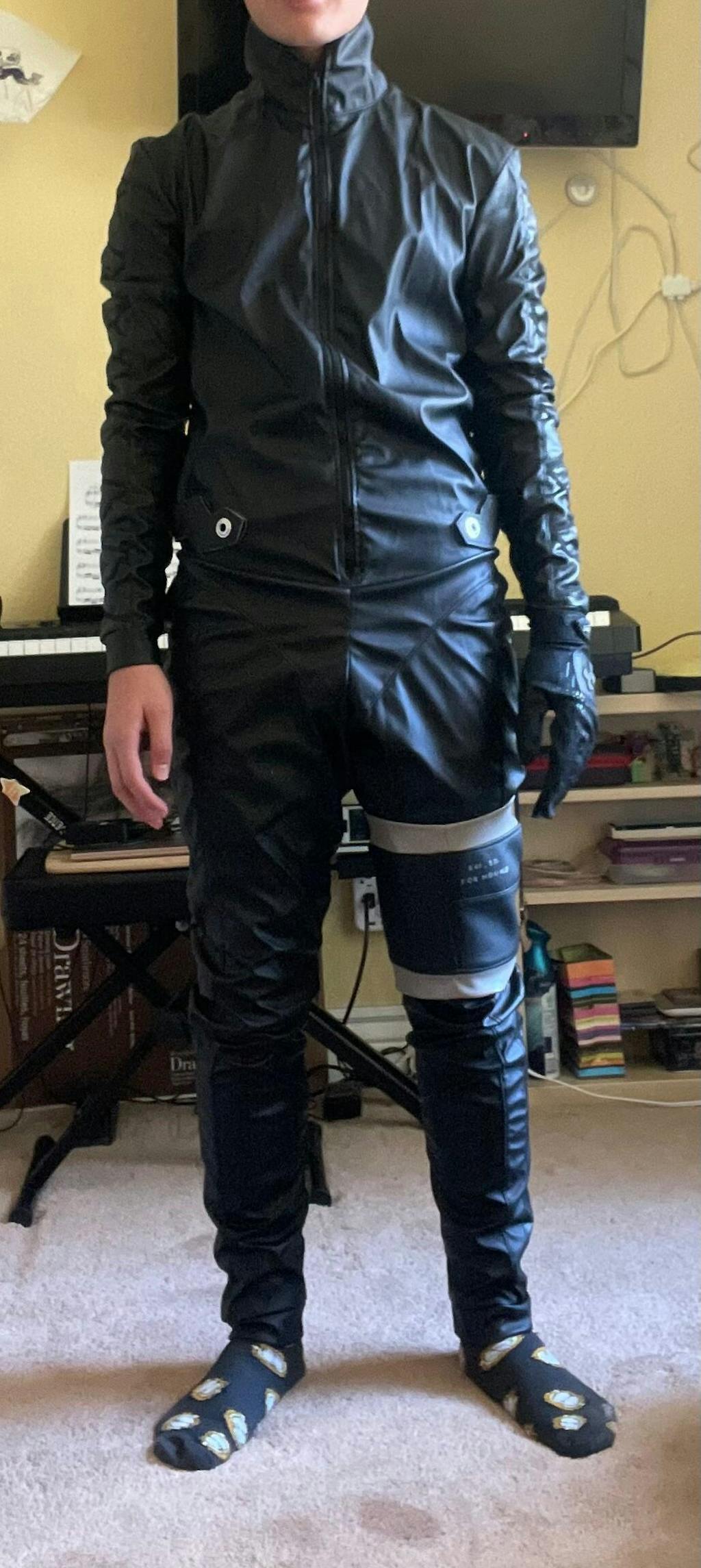 The quality of the materials and the detail on this cosplay is insane! I was thrilled from the second I took it out of the box, where all pieces were carefully packaged to avoid damage while shipping. It fits snugly to my measurements, and the mobility is actually pretty okay for a bodysuit! The only thing I would say would be that some of the accessories, mainly the thigh band (and some of the knee/elbow guards), can fall down quite easily with movement. However, I think it can be easily fixed as needed for the individual; for me, I'm planning on adding some velcro on the inner edge of the thigh band to attach it to the bodysuit, and if you crease the inner parts of the guards, they can sit more easily on the crook of your arm or leg! Overall, I am so, SO happy with my purchase and I'd like to thank Helena and the team for doing such a wonderful job, both on this cosplay and in terms of communication!